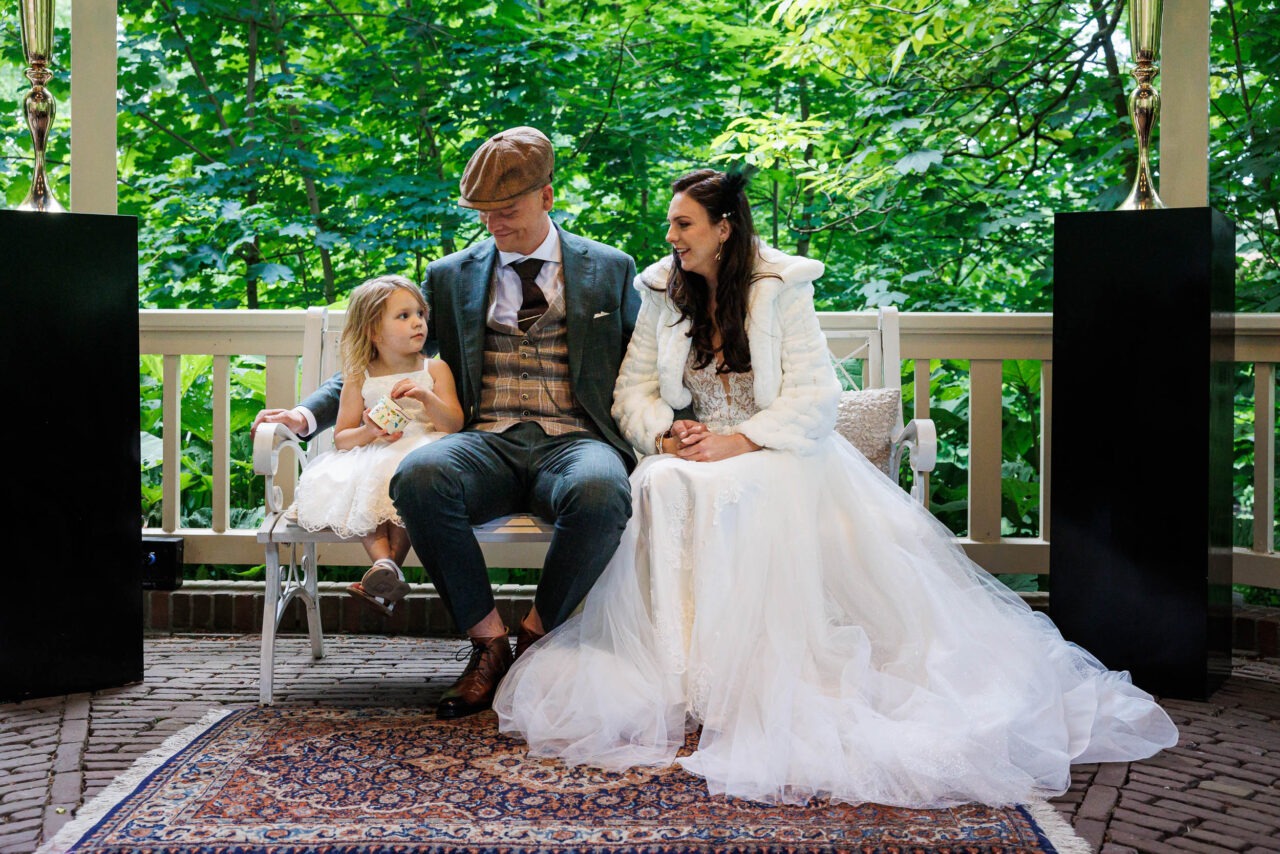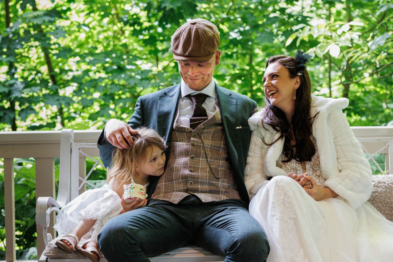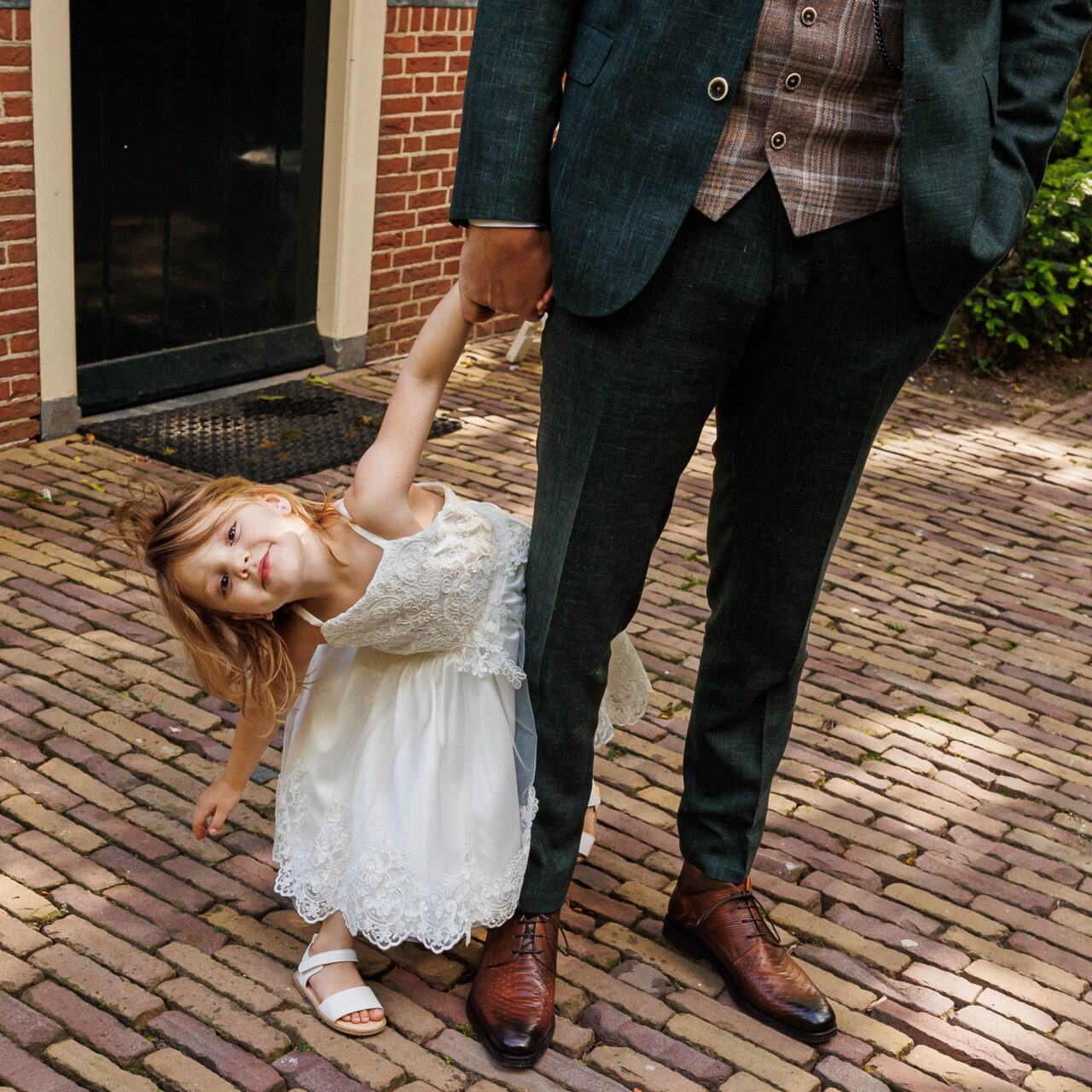 De ceremonie zelf was intiem en oprecht. Hun dochtertje op schoot, ze viel bijna in slaap: zo’n klein, liefdevol moment dat alles even stilzet.