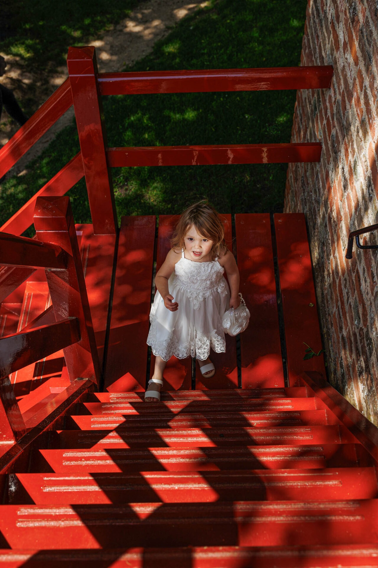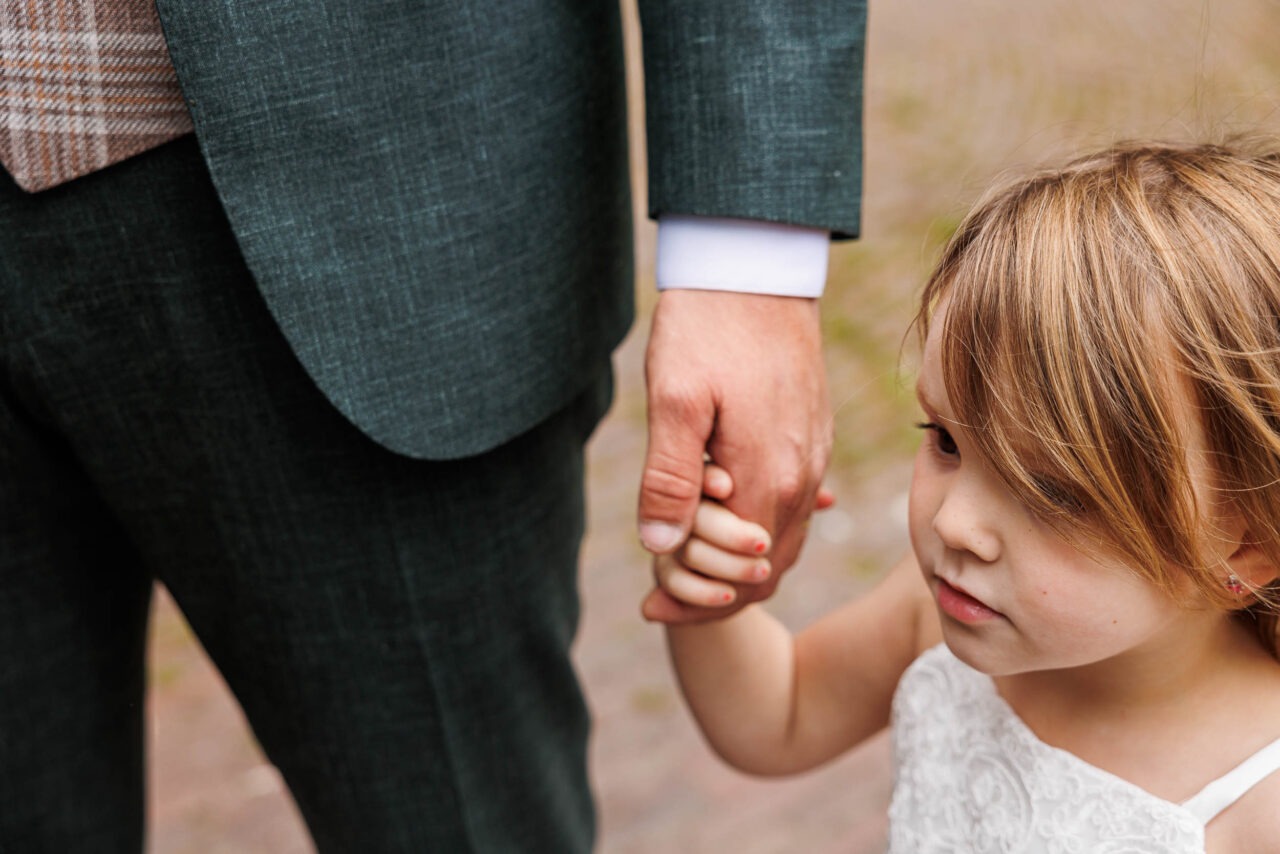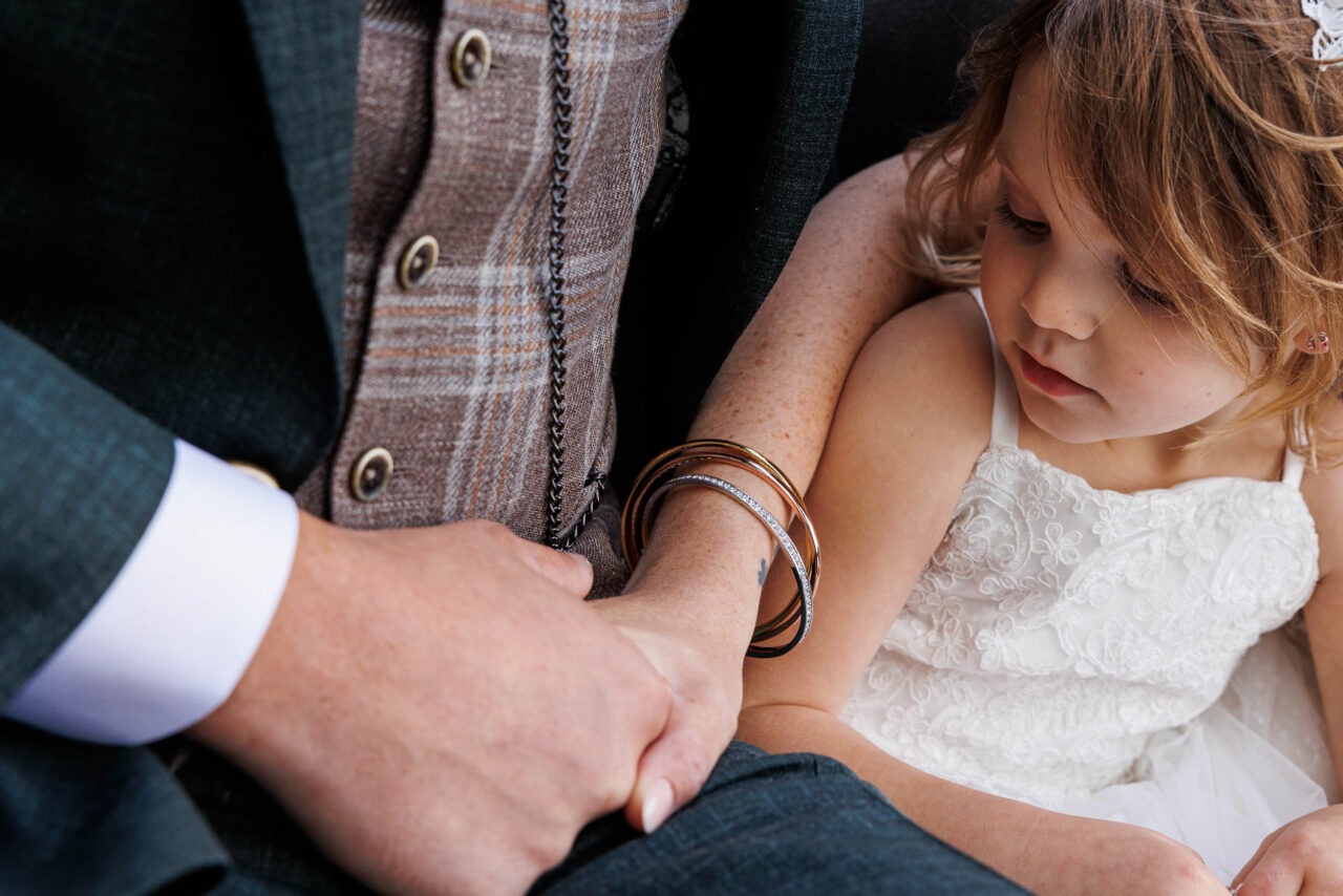 De ceremonie zelf was intiem en oprecht. Hun dochtertje op schoot, ze viel bijna in slaap: zo’n klein, liefdevol moment dat alles even stilzet.